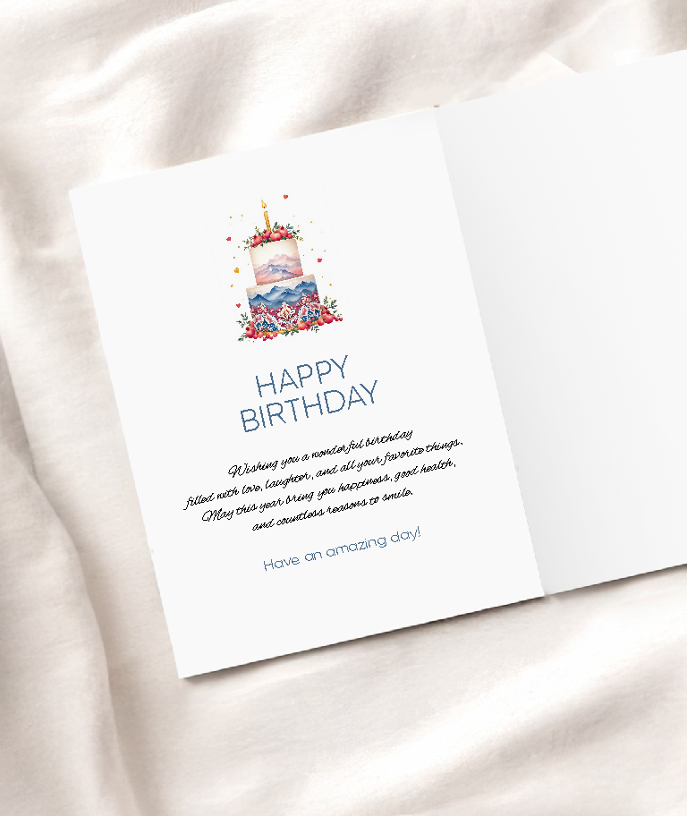 Printed on premium-quality textured cardstock, the card offers a luxurious, tactile feel that enhances its beauty. Thoughtfully crafted for birthdays of all ages, it’s a memorable keepsake that will be cherished long after the candles are blown out.